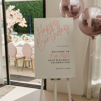 Everything harmonised beautifully with the table décor and blossom trees so thoughtfully provided by Danis Catering Marbella. The finishing touches made all the difference—personalised menus and welcome cards, each one crafted with the same care as the larger party rental elements, ensured that every guest felt part of something truly special.