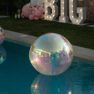 The decoration of the celebration was our stunning flower wall backdrop, paired with elegant floating pool orbz that shimmered under the Marbella sun. Adding a bold yet sophisticated statement, our illuminated letters glowed warmly into the evening, providing both a photo-worthy feature and an ambience-setting light source.